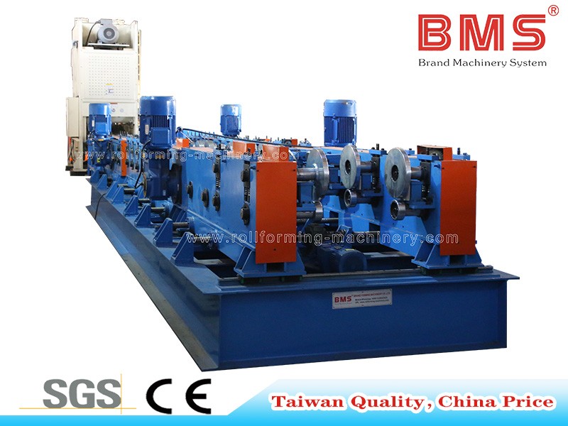 Uncoiler → Feeding Guide Device→Roll Forming System→Hydraulic Post Cutting Device→Exit Rack*3 → PLC Control System → Hydraulic Station