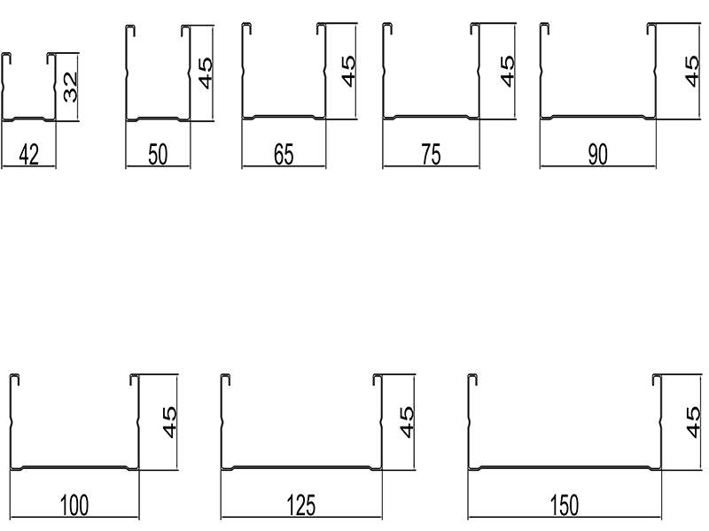 This Purlin Roll Forming Machine Can Produce different CU60-200 purlin size without changing rollers or spacers.