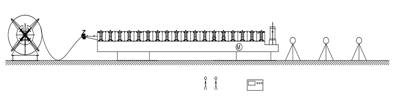 5T Hydraulic Decoiler→Manual Pre-Cutter Device→Feeding Guide Device→Roll Forming System→Hydraulic Post Cutter Device→AUTO Exit Rack