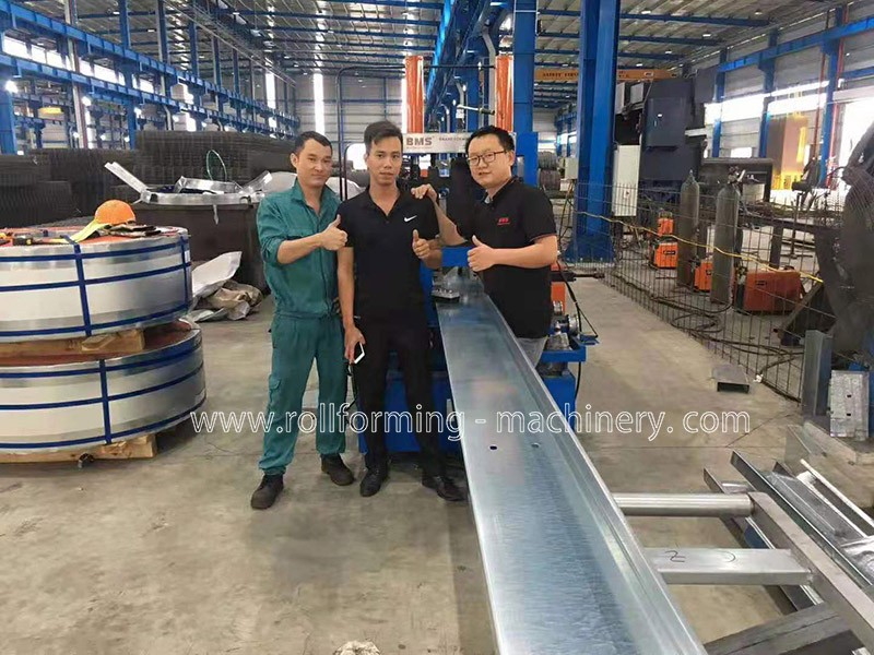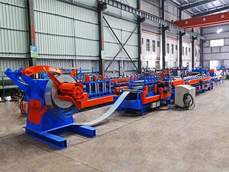 Decoiler→Feeding and Leveling Device→Hydrualic Pre-Cutting & Punching Device→Rolling Forming System→Hydraulic Post Cutting→Exit Rack