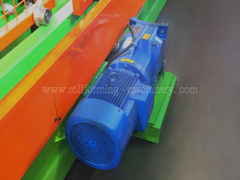 A left and right guiding device at the main entrance of the machine. During work,Raw materials on both sides of the plate the enter into the machine by the left and right guiding device,make the raw materials and roll forming system to maintain the correct position. The guiding position can be adjusted by the manual screw mechanism,and the left and right can be adjusted independently.