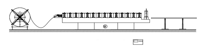 Decoiler→Feed Guide Device→Rolling Forming System→Leveling Device →Hydraulic Post Cutting Device→Exit Rack