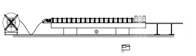 Decoiler→Feeding and Leveling Device→Rolling Forming System→Hydraulic Post Punching & Cutting→Exit Rack