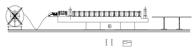 Decoiler→Guide Feeding & Leveling Device→Roll Forming System→Hydraulic Post Cutter →Exit Rack